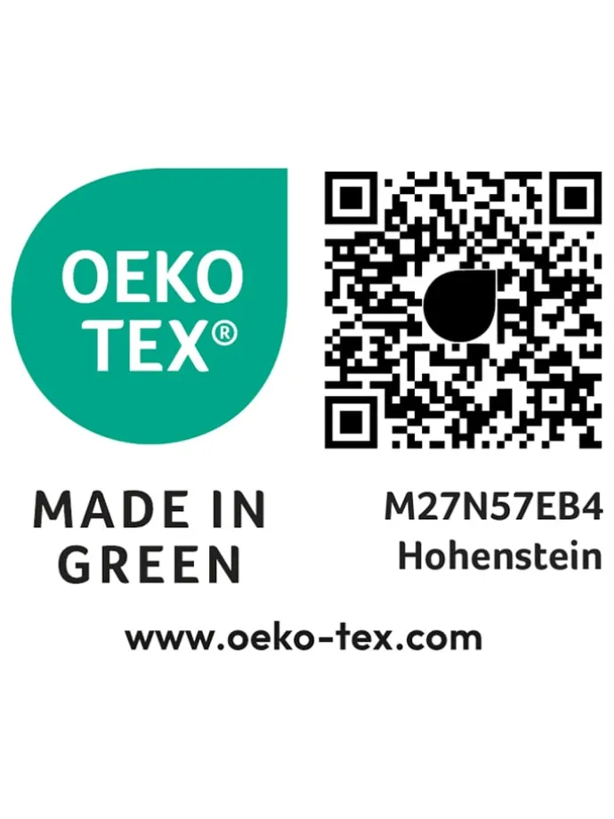 Das Made in Green by OEKO-TEX® -Siegel steht für schadstoffgeprüfte Materialien, umweltfreundliche Betriebe sowie sichere und sozialverträgliche Arbeitsbedingungen.