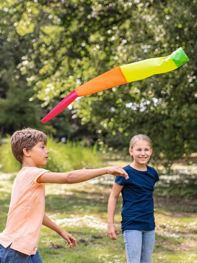 Toller Wurfspaß für drinnen und draußen: Die bunte Luftikus Flugtüte kombiniert Spielen mit Bewegung. Einfach Schwung holen und die Tüte aus robustem Polyester nach vorne und oben werfen, schon gleitet die Flugtüte wie von selbst durch die Luft. Ganz spielerisch und nebenbei können Kinder dabei ihre Geschicklichkeit und Wurfkraft trainieren.