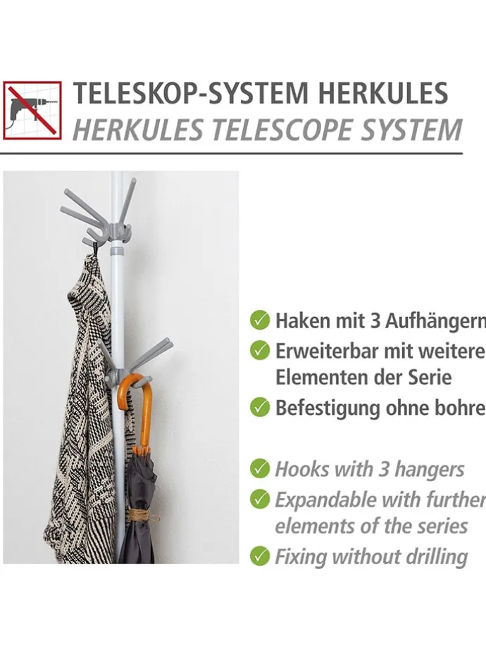 – wird einfach zwischen Boden und Decke geklemmt und ist in der Höhe verstellbar, so dass es in viele Räume passt