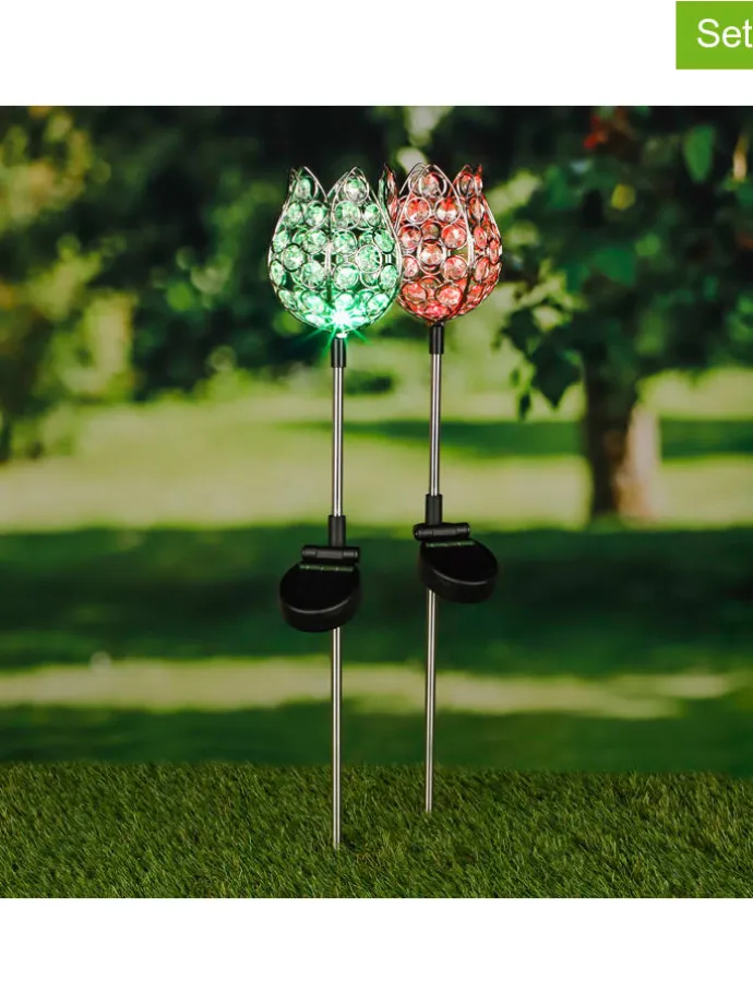 – 2 LED-Solar-Gartenstecker