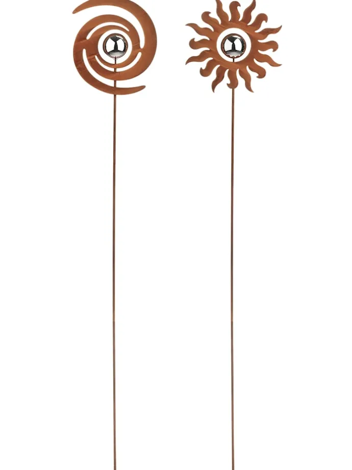 Das Gartensteckerset FELIX von Kobolo, bestehend aus den Gartensteckern FREYA und FINJA, vereint zeitlose Eleganz mit kunstvollem Design. Die beiden Stecker in Rostoptik setzen stilvolle Akzente in Ihrem Garten und verleihen ihm eine besondere Atmosphäre. FREYA begeistert mit einem sonnenförmigen Design, das Wärme und Lebendigkeit ausstrahlt, während FINJA mit einer eleganten Spiralform moderne Akzente setzt. Gefertigt aus robustem Metall und veredelt mit einer edlen Rostpatina, sind diese Gartenstecker nicht nur dekorative Highlights, sondern auch langlebige Begleiter für Ihren Außenbereich. Mit dem Set FELIX bringen Sie Kunst und Natur harmonisch zusammen.