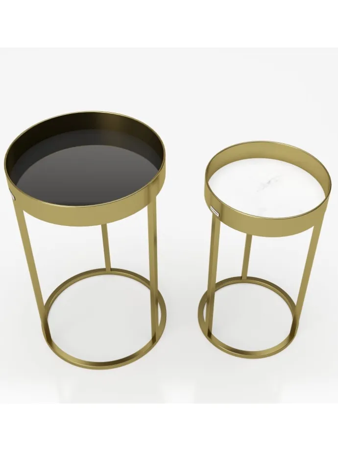 2tlg. Set: Säulentisch/Beistelltisch „MARY“ in Gold – (B)39x(H)63x(T)39cm