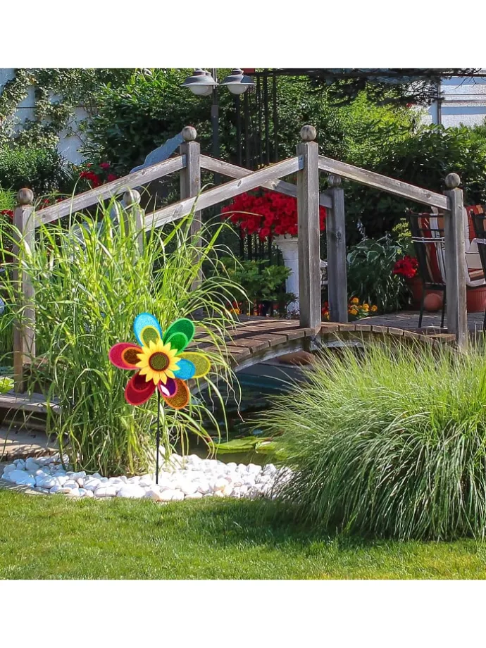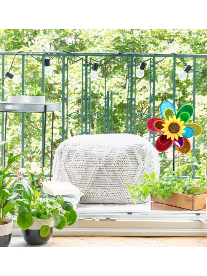 Ihr Balkon wirkt etwas karg und Sie wollen ihn mit ein bisschen Farbe freundlicher gestalten? Dann ist dieser farbenfrohe Gartenstecker die ideale Dekoration für Sie! Einfach zusammengesetzt und in einen Blumentopf gesteckt, ist das bunte Blumen Design ein echter Hingucker. Genießen Sie das prachtvolle Farbenspiel, wenn das Windrad von wehenden Lüften angetrieben wird. An den leuchtenden Blütenblättern erfreuen sich sowohl Kinder als auch Erwachsene. Oder Sie lenken damit Vögel von Ihrem Grundstück weg. Platzieren Sie die Windmühle im Garten, auf der Terrasse oder nehmen Sie sie mit zum Strand sowie zum Camping.