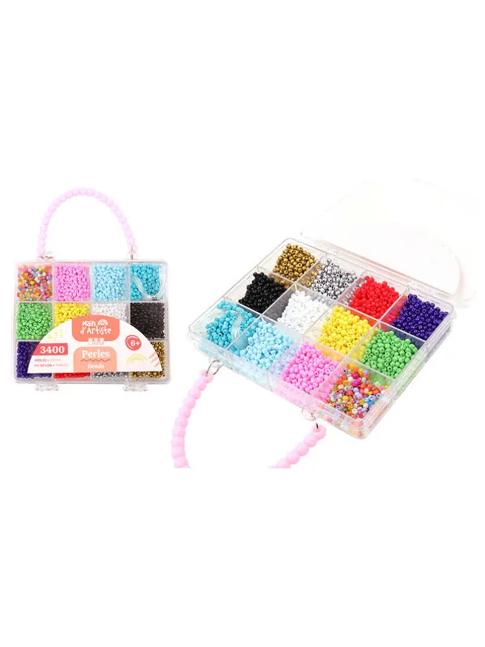 – Inhalt: 3.400 Perlen, verschiedene Bänder