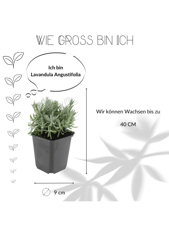 Ich bin Lavendel „Hidcote”, Lavandula angustifolia, und ich spiele gerne mit Ihren Sinnen. Meine violetten Blüten duften verführerisch und locken Bienen und Schmetterlinge in Ihren Garten, als würde ich eine geheime Party organisieren, zu der jeder willkommen ist. Mit meiner Höhe von 30 bis 50 cm bleibe ich kompakt, sorge aber dennoch für eine lebendige, duftende Atmosphäre.