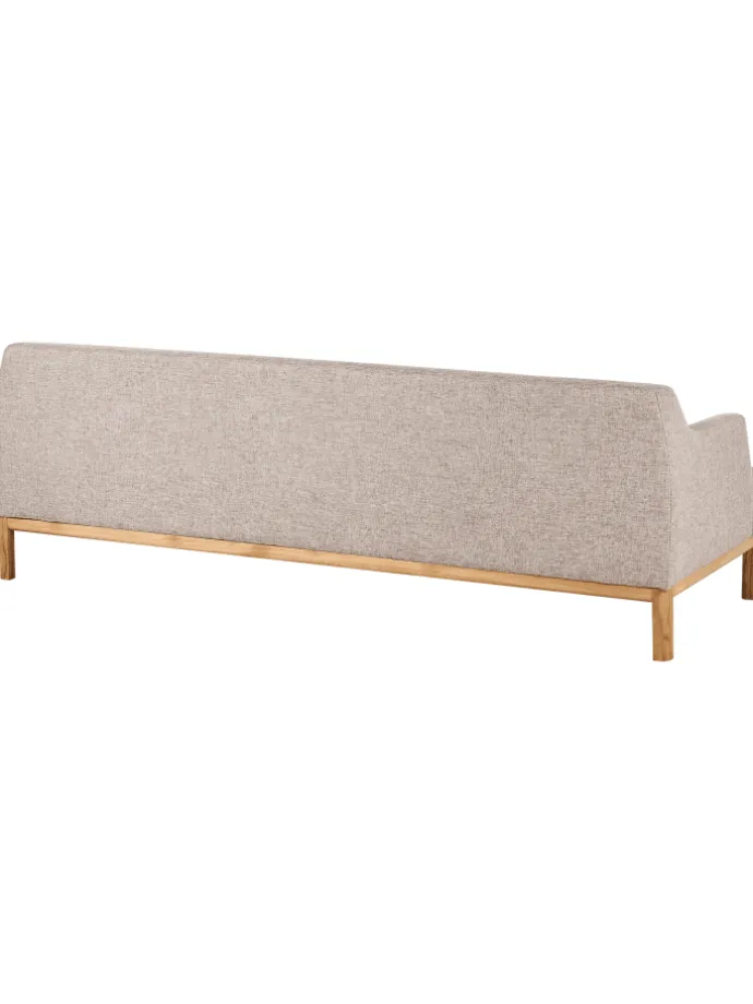 Freistehendes 3-Sitzer Stoffsofa mit hohen Holzbeinen. Dieses Polstersofa besticht nicht nur mit seiner stilvollen Ausstrahlung, sondern auch mit seiner tiefen Sitzfläche, stabilen Holzkonstruktion und en, komfortablen Sitzpolsterung. Zudem ist es mit einem hochwertigen Stoff rundum bezogen und lässt sich daher auch im Raum frei aufstellen. Dank der wasserabweisenden Oberfläche und lebendigen Farbwahl ist der Dreisitzer die perfekte Wahl für jeden, der Pflegeleichtigkeit und einen frischen Look in seinem Wohnzimmer schätzt. Die schlanken, hohen Holzbeine sorgen für angemessene Stabilität und unterstreichen den skandinavischen Look des Sofas.