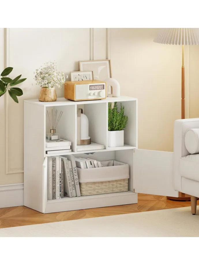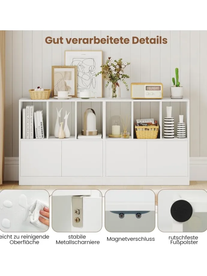 Mit 3 offenen Würfeln bietet dieses Bücherregal reichlich Platz, um Bücher, Fotos, Pflanzen oder Aufbewahrungsboxen zu präsentieren. Zusätzlich bietet der geschlossene Schrank versteckten Stauraum für Gegenstände und sorgt so für ein ordentliches und aufgeräumtes Erscheinungsbild. Ausgestattet mit 2 Anti-Kipp-Sicherungen bietet dieses moderne Displayregal zusätzliche Sicherheit durch feste Wandbefestigung. Dieses moderne Würfelregal dient nicht nur als Bücherregal, sondern auch als vielseitiges Displayregal und Aufbewahrungsregal. Seine Funktionalität wird durch sein ansprechendes Design ergänzt und macht das Standregal zur idealen Ergänzung für Zuhause und Büro.