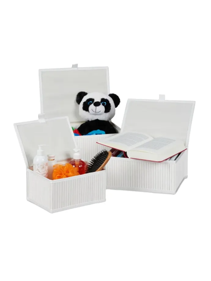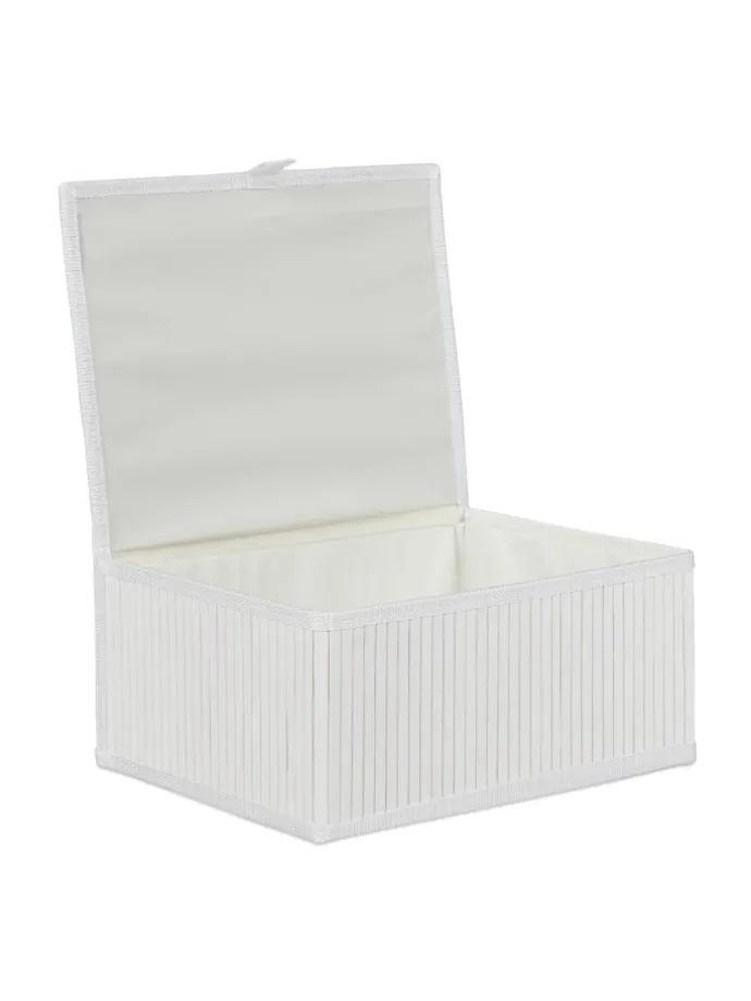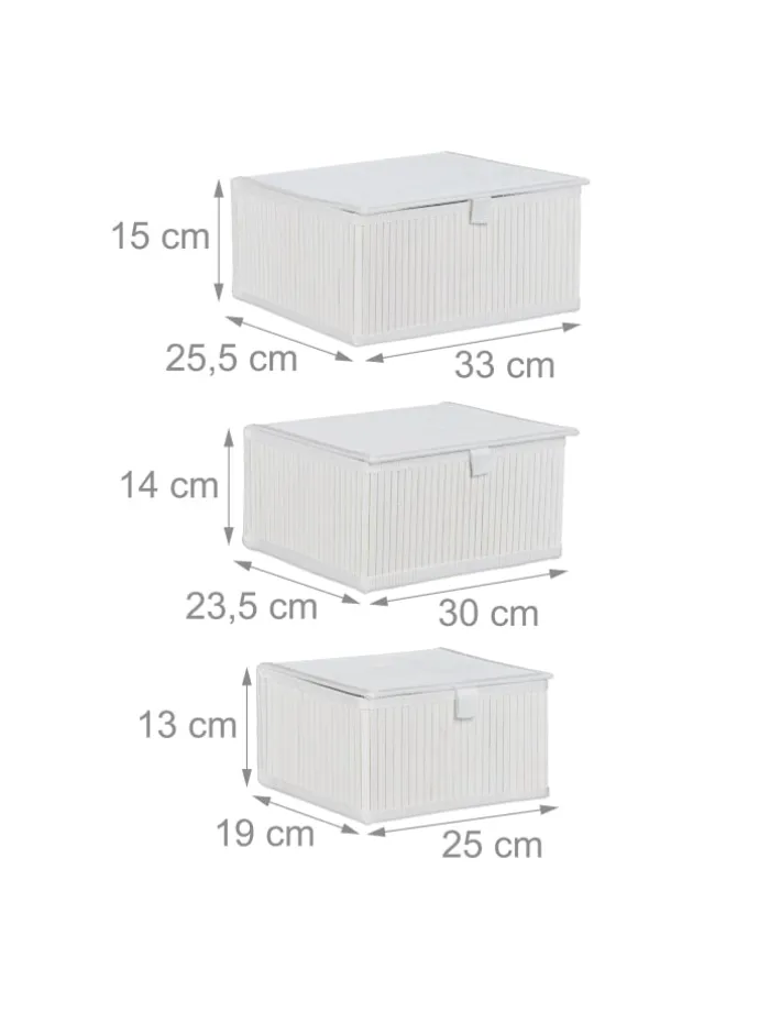 Wenn Badablage oder Wannenrand überfüllt sind, schafft der Aufbewahrungskorb fürs Badezimmer Ordnung. Der feuchtigkeitsabsorbierende Bambuskorb ist nicht nur für das Bad geeignet. Im ganzen Haus halten die Aufbewahrungsboxen die Dinge des Alltags übersichtlich an ihrem Platz. Die praktischen Dekokörbe zieren Kinder-, Schlaf- oder Wohnzimmer. Verwende das Set als Regalkorb oder Schrankbox für Socken, Accessoires, Spielzeug und andere Kleinteile. Durch den Deckel wird der Inhalt staubfrei verwahrt.