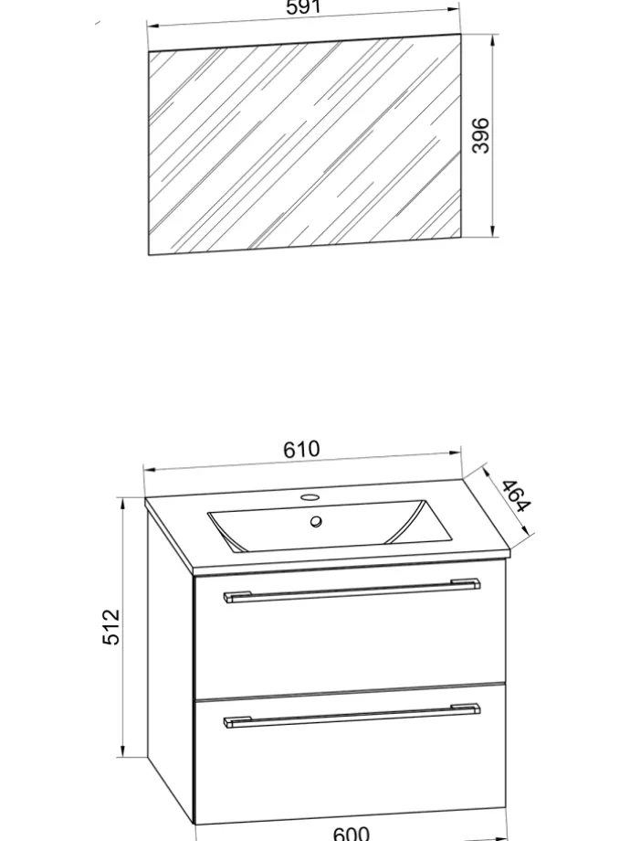 Das Badmöbel-Set besteht aus einem Unterschrank mit zwei Schubladen.