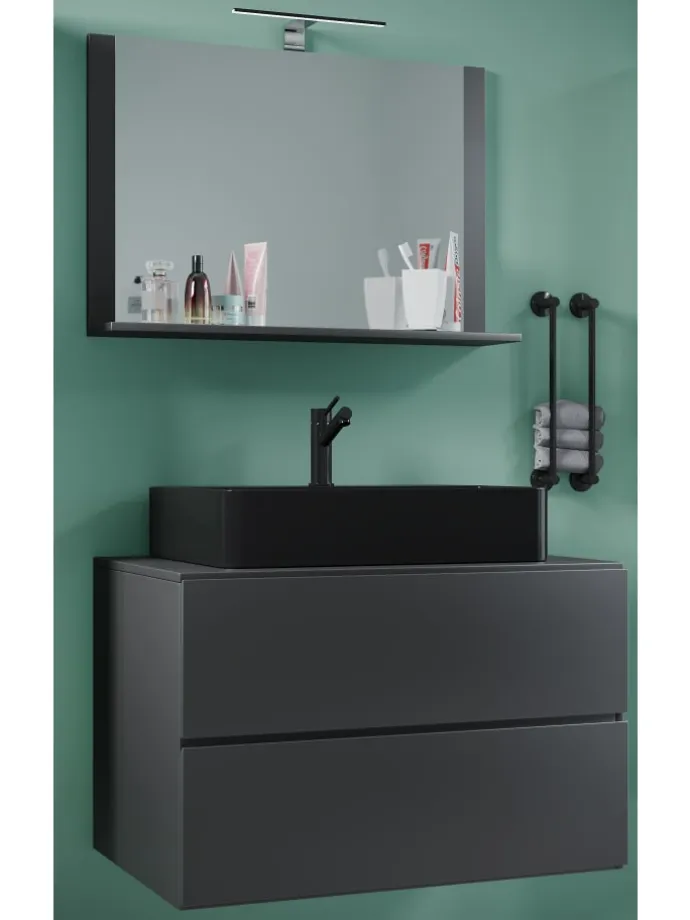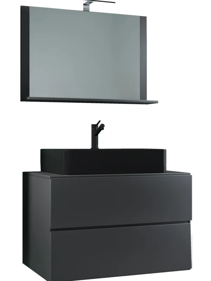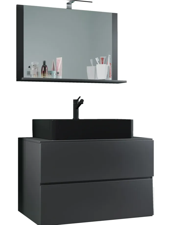 – Set: 1 Unterschrank mit 2 Schubladen, 1 Waschbecken, 1 Spiegel