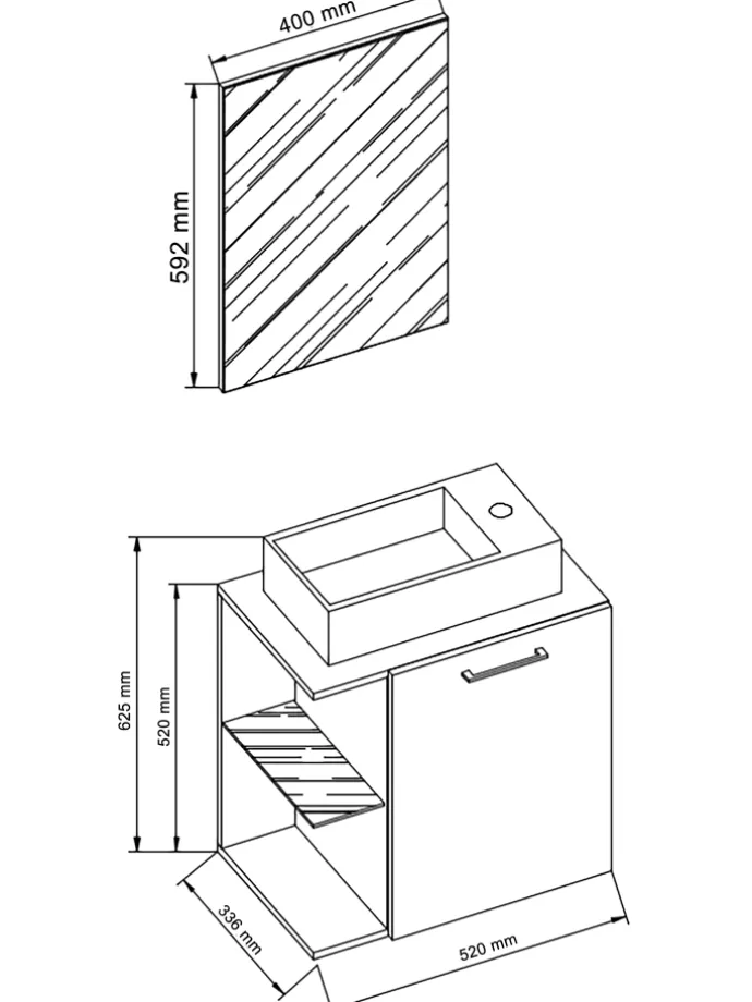 – Set besteht aus Waschtisch Schrank, Waschbecken und Spiegel