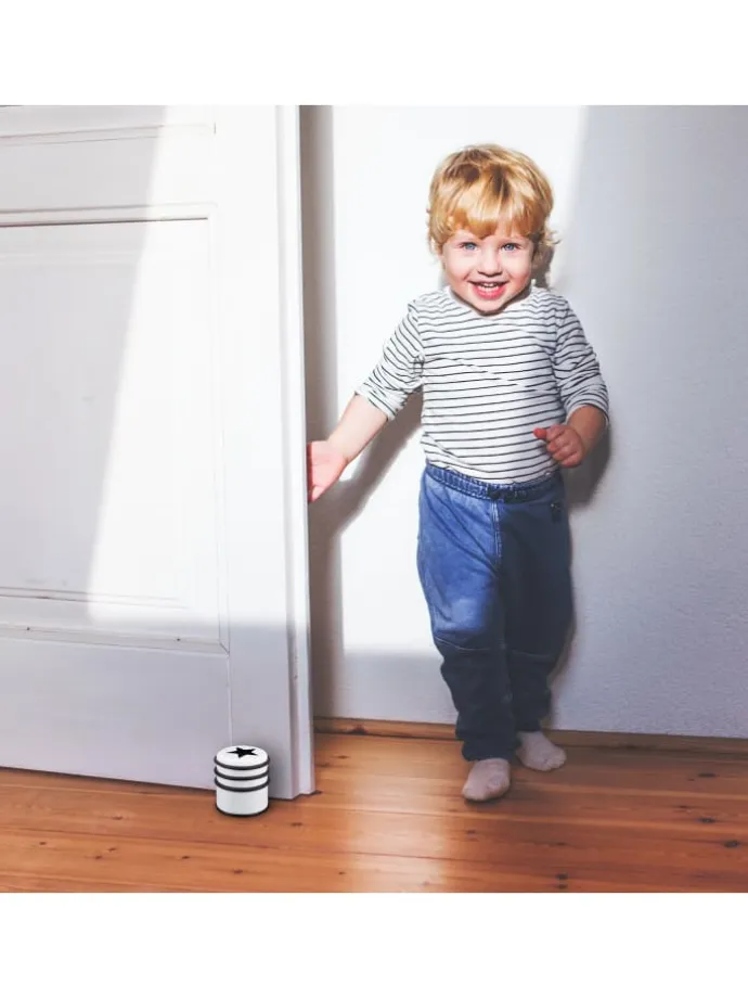 Sorge mit dieser Türzuschlagsbremse für eine praktische Lösung gegen unbeabsichtigtes An- und Zuschlagen von Türen oder Fenstern. Dank des schweren Eigengewichtes des Türstoppers ist ein stabiler Stand auf allen Böden garantiert. Die gummierte Unterseite verhindert das Wegrutschen der Türbremse und die umlaufenden Gummiringe beugen Beschädigungen an Türen und Möbeln vor. Darüber hinaus überzeugt der Türaufhalter mit seinem tollem Stern-Motiv und fügt sich ideal in Wohn- oder Schlafzimmer ein.