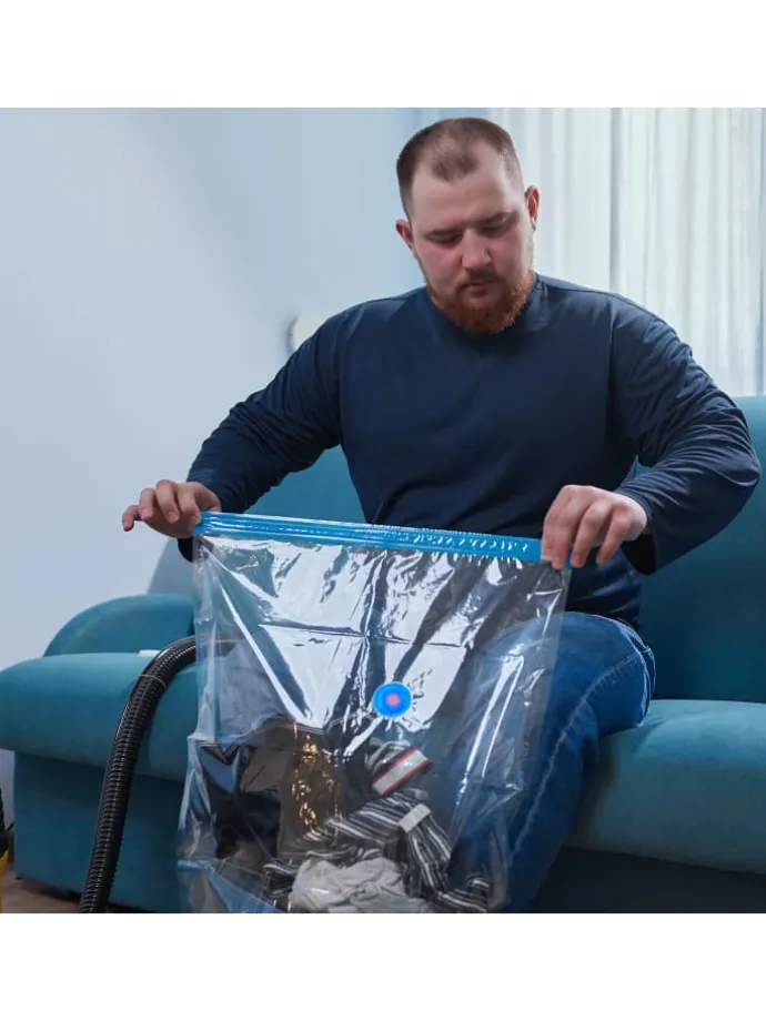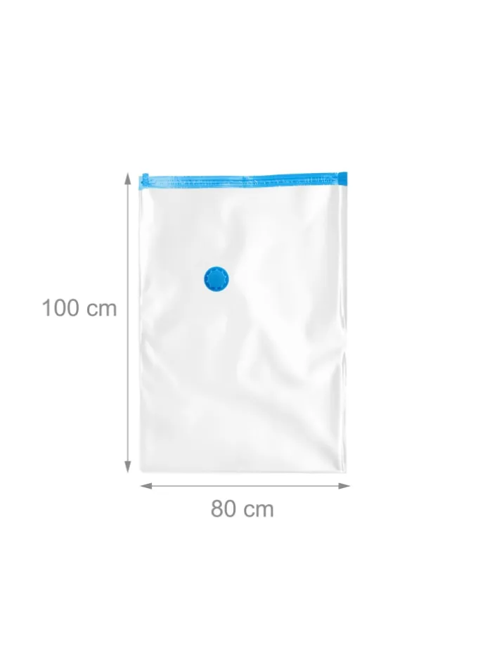 Mit diesen Vakuumierbeuteln in XL-Größe kannst Du Kleidung, Decken und vieles mehr platzsparend verstauen. Platziere Deine Wäsche in den Kleiderbeuteln, verschließe sie mit dem Schiebeverschluss und leite die Luft mit dem Staubsauger durch das Ventil ab. Die Kompressionstaschen sparen nicht nur Platz in Schrank und Schublade bei Dir Zuhause, sondern auch auf Reise in Koffer und Rucksack. Durch das transparente Material hast Du den Inhalt der Zip-Beutel stets im Blick und jederzeit griffbereit.