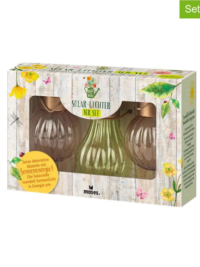 – 3 LED-Solar-Leuchten in verschiedenen Farben