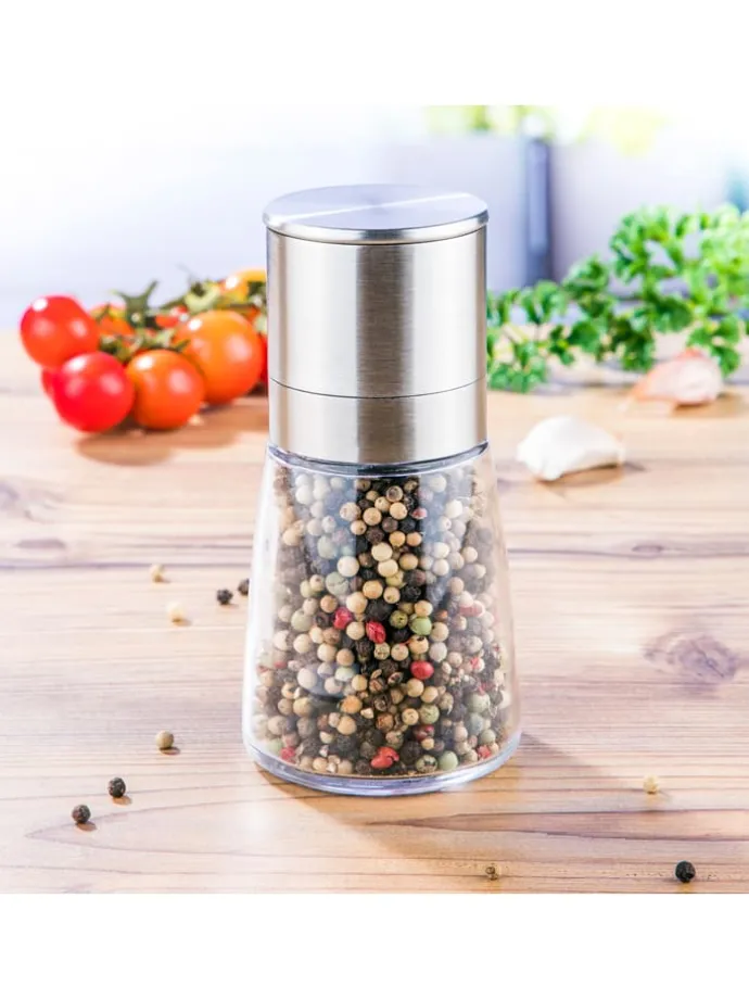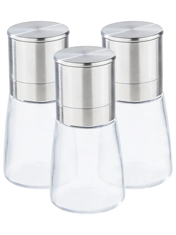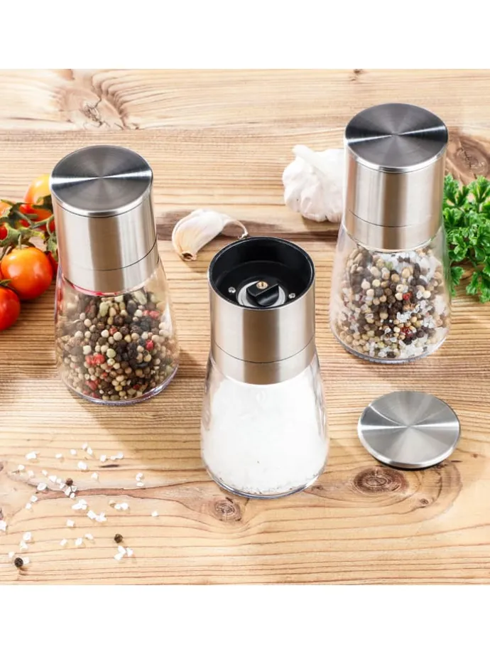 – 3 Mini-Edelstahl-Salz-/ Pfeffermühlen