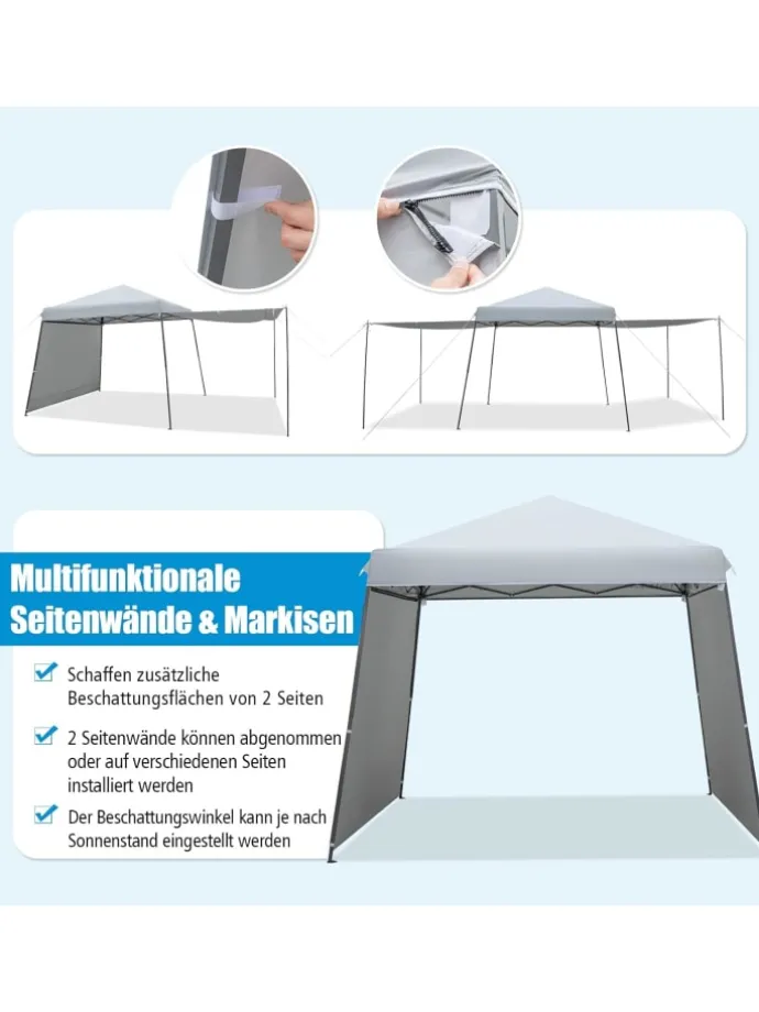 Gesamtabmessungen (schließen Sie die Markisen): 300 x 300 x 235-255 cm (L x B x H)