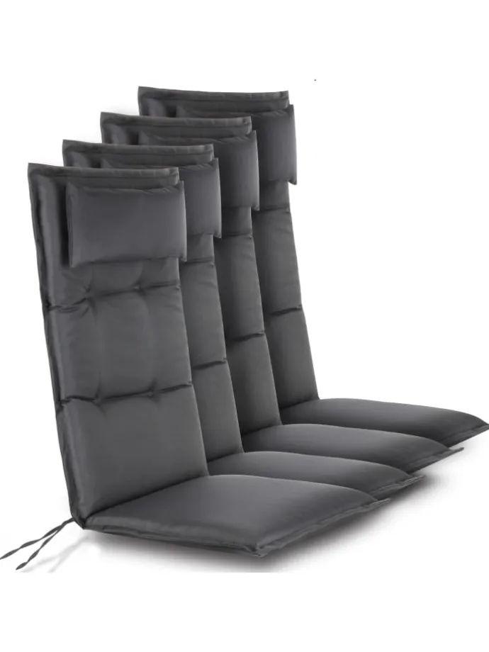 Entspannt den Sommer genießen mit unseren Hochlehner-Stuhlkissen Palermo. Geeignet als Auflage für Ihren Hochlehner oder ihre Bank. Die Auflagen verfügen über eine 5 cm dicke Polsterung und ein seperates, abnehmbares Kissen im Kopfbereich. Um lässtiges Verrutschen zu verhindern, sind die Gartenauflagen mit vier Befestigungskordeln und einem Gummizug an der Rückseite ausgestattet. Somit ist ein optimaler Halt an allen gängigen Stühlen gewährleistet. Der Stoff ist wasserdicht und atmungsaktiv und nimmt auch nach längerem Sitzen wieder seine unsprüngliche Form an. Das hautfreundliche und strapazierfähige Polyester-Material ermöglicht eine einfache Reinigung mit einem nassen Tuch. Ideal geeignete für den Innen- und Außenbereich. In Europa hergestellt für kurze Transportwege und hohe Produktionsstandards.
