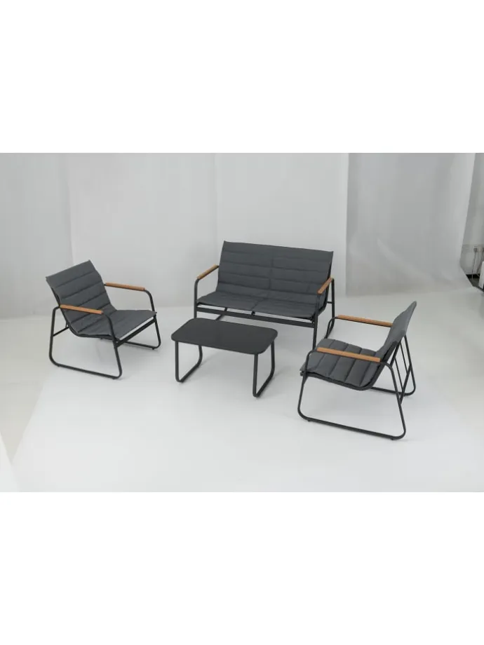 Erleben Sie ultimativen Komfort und Vielseitigkeit mit diesem 4-teiligen Gartenmöbel-Set. Das Set verfügt über weiche, abnehmbare Kissen, die atmungsaktiven Stoff darunter ermöglichen, für individuellen Komfort bei unterschiedlichem Wetter. Die stabile Metallkonstruktion mit verstärkten Querstreben trägt bis zu 150 kg pro Stuhl und 300 kg für den 2-Sitzer Bank. Verstellbare Fußpolster sorgen für zusätzliche Stabilität auf unebenem Boden. Enthalten ist ein rechteckiger Couchtisch mit gehärtetem Glas und abgerundeten Ecken, der Sicherheit mit Stil verbindet.