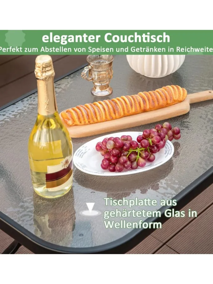 Couchtisch mit Sicherheitsglas für einfaches Erreichen von Speisen und Getränken