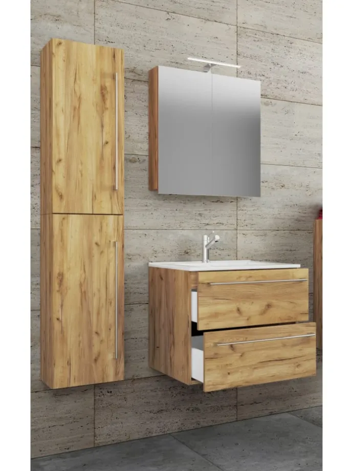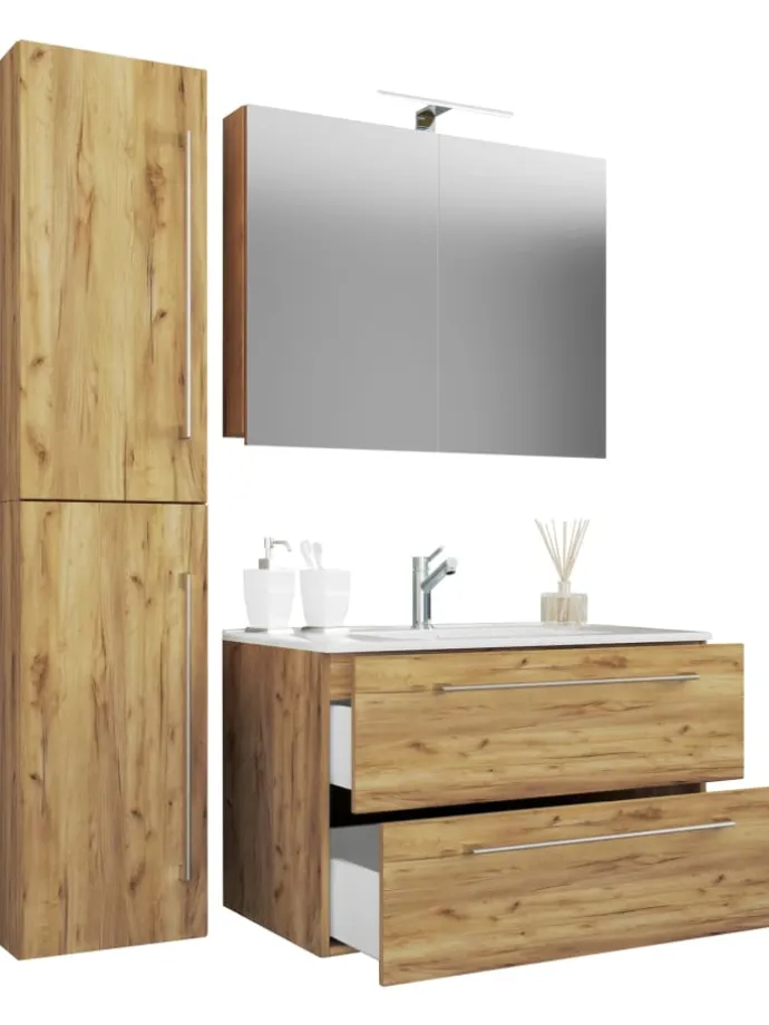 – Set: 1 Unterschrank, 1 Waschbecken, 1 Spiegelschrank, 1 Hochschrank