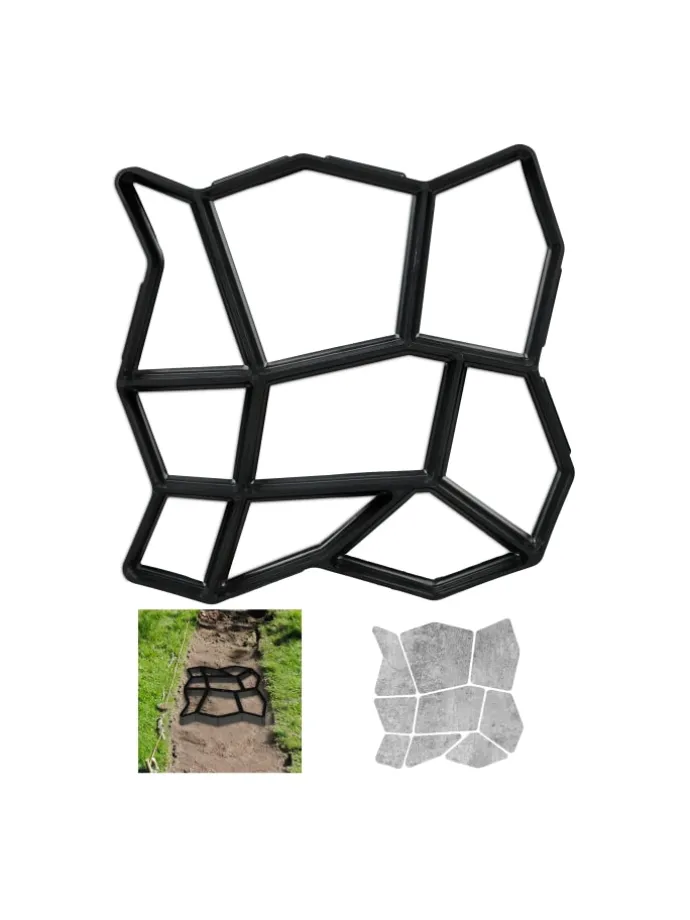 Gestalten Sie Ihren Garten individuell mit der wiederverwendbaren Gießform für Beton und Zement. Mit der Steinplattenform aus Kunststoff kreieren Sie ein dekoratives Muster aus 9 Kammern, welches Sie beliebig häufig wiederholen können, um einen Weg oder eine Fläche zu erschaffen. Platzieren Sie die Zement-Gießform auf einem geeigneten Untergrund, füllen Sie Beton ein und streichen Sie ihn mit einer Maurerkelle glatt. Der Betonstempel kann nach kurzer Zeit entfernt und weiterverwendet werden.