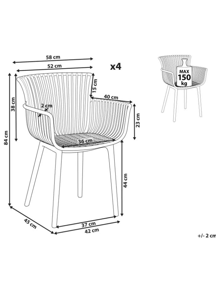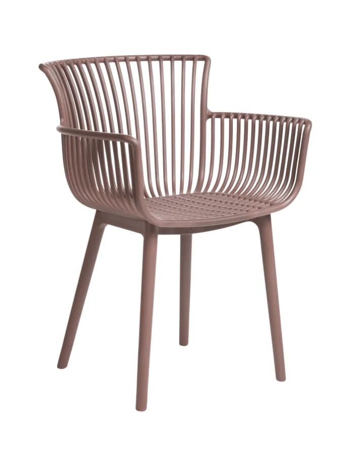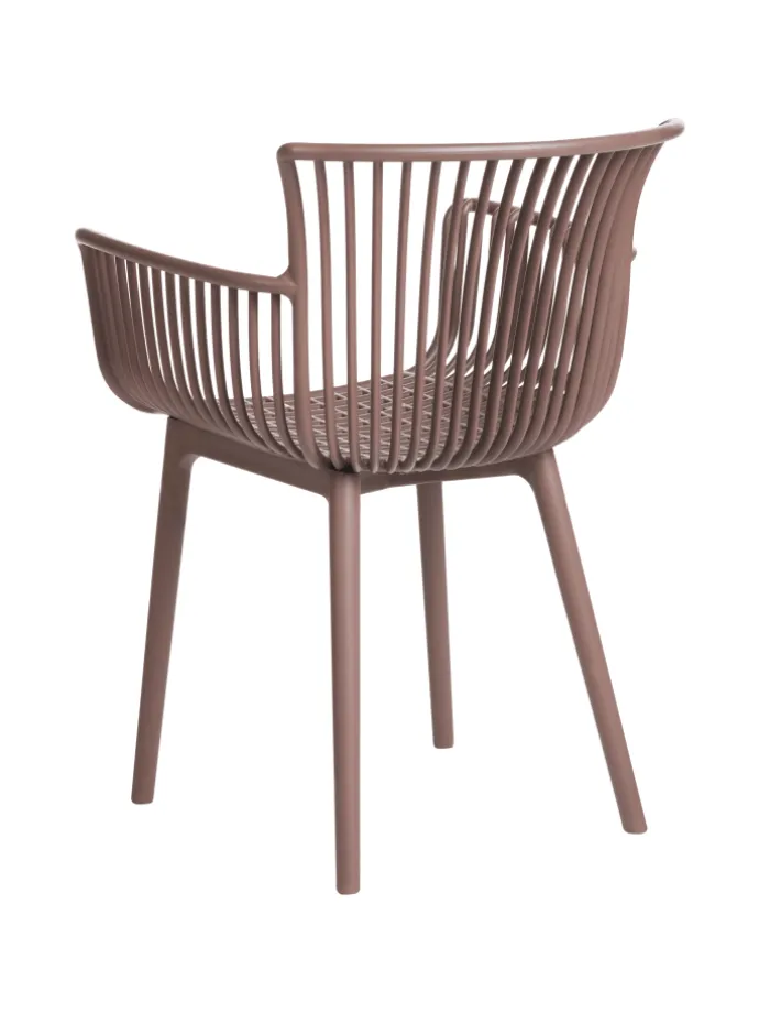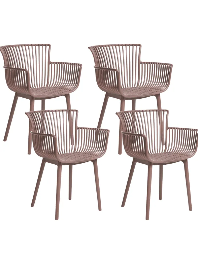 Braune Kunststoffstühle im praktischen 4er Set für den Innen- und Außenbereich. Dieses äußerst bequeme und praktische Stuhlset wertet jeden Raum auf. Die Stühle sind aus Kunststoff gefertigt, was den Vorteil hat, dass sie schmutzabweisend sind und sich sowohl für den Innen- als auch für den Außenbereich eignen. Mit der breiten Sitzfläche, der Rückenlehne und den Armlehnen sind sie eine ideale Ergänzung für den Essbereich, die Küche oder den Garten. Das Retro-Design verleiht jedem Einrichtungsstil einen Vintage-Touch.