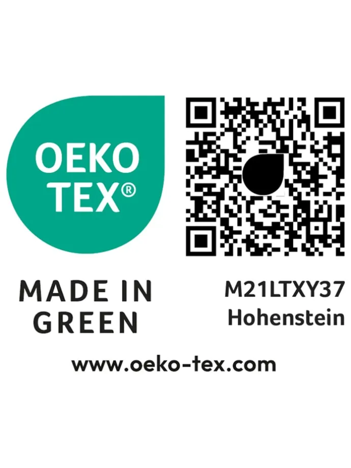 Das Made in Green by OEKO-TEX® -Siegel steht für schadstoffgeprüfte Materialien, umweltfreundliche Betriebe sowie sichere und sozialverträgliche Arbeitsbedingungen.