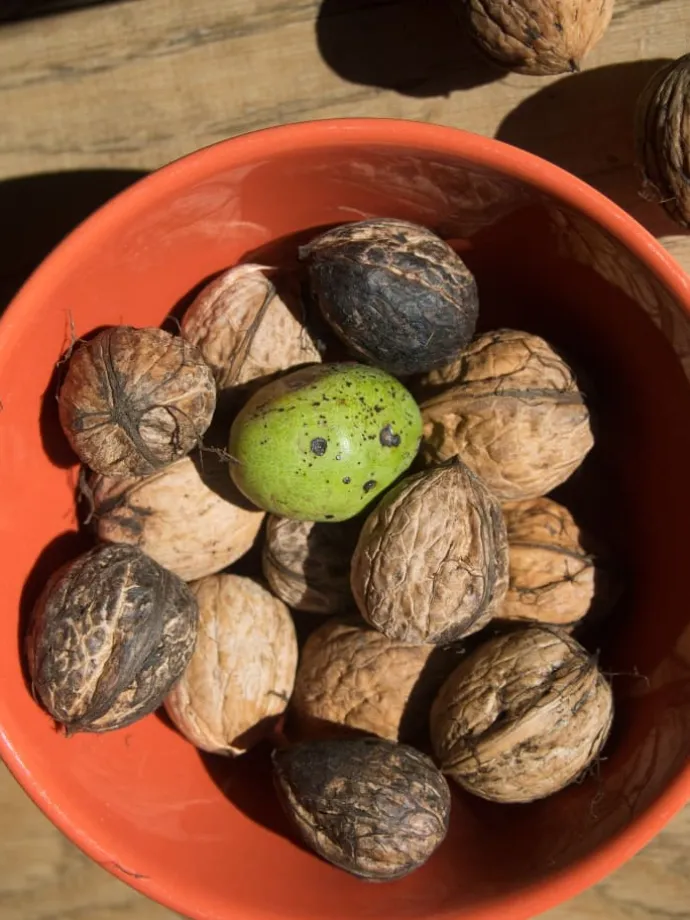 1 x Walnuss: Die Nüsse dieses Baumes sind nicht nur köstlich, sondern der Walnussbaum ist auch für seine eleganten Blätter und sein robustes Aussehen bekannt.