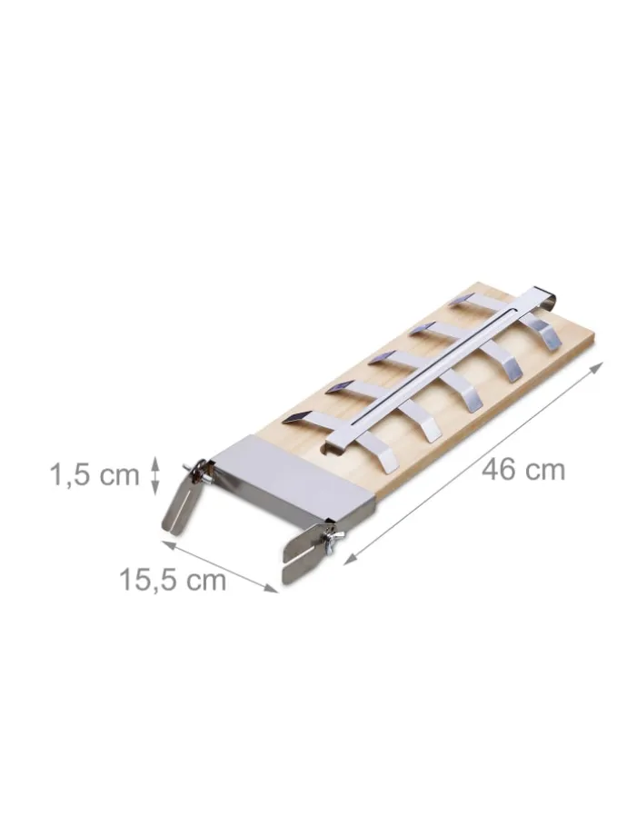 Hinweis: Reiben Sie vor der ersten Anwendung das unbehandelte Holzbrett mit Speiseöl ein. Das Wässern des Lachsbretts ist nur notwendig, wenn Sie den Abstand von ca. 20 cm zwischen Fisch und Feuer nicht einhalten können.