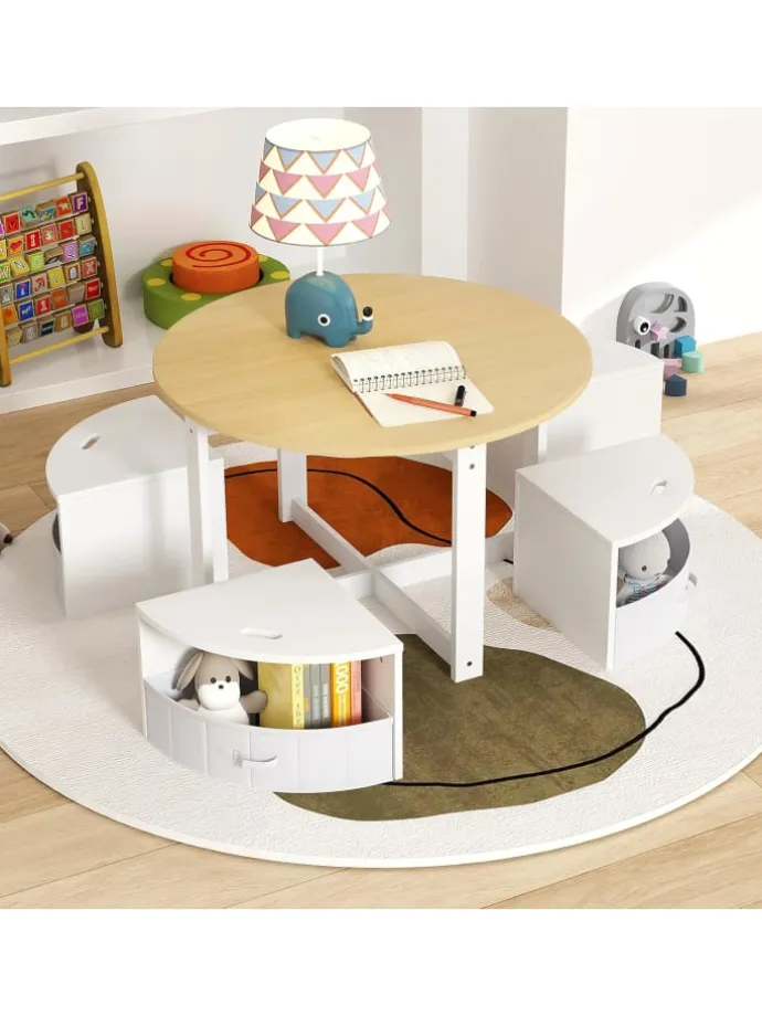 Nutzen Sie den Platz optimal und fördern Sie kreatives Spielen mit diesem innovativen Kinder-Tisch- und Stuhl-Set.