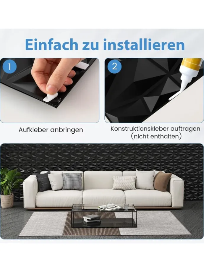 Aus hochwertigem, feuerbeständigem PVC gefertigt, sind diese dekorativen Paneele nicht nur langlebig, sondern auch pflegeleicht. Stellen Sie sich die Möglichkeiten vor mit 50 schicken, diamantgemusterten Fliesen, die Sie nach Belieben bemalen, schneiden und anordnen können. Verwandeln Sie in wenigen Minuten jeden Raum von trist zu fabelhaft, sei es Ihr Wohnzimmer, Schlafzimmer oder Büro. Decken Sie eine beträchtliche Fläche mit Ihrer künstlerischen Vision ab und machen Sie ein mutiges Statement.