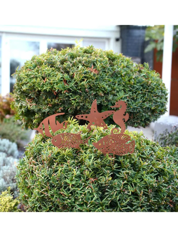 UNUS Garden Fische, Seestern und Seepferdchen Gartenstecker 5er Set, Gartendeko Rostoptik, Roststecker aus Edelrost Metall, Rost Deko für Garten Terrasse Balkon