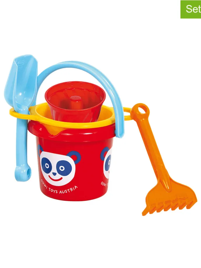 – Inhalt: Eimer, Sieb, Sandform, Schaufel, Harke
