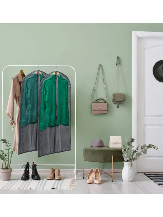 Deine besonderen Kleidungsstücke schützt Du mit diesen Kleidertaschen unterwegs und im Kleiderschrank zuverlässig vor möglichen Beschädigungen, Schmutz oder Staub. Die robusten Kleiderschutzhüllen eignen sich sowohl für Anzüge als auch für Hemden, Blusen, Jacken und vieles mehr. Dank der transparenten Seite erkennst Du auf einen Blick, welches Kleidungsstück sich im Inneren des Kleidungssacks verbirgt. Der lange Reißverschluss ermöglicht ein einfaches Einlegen und Entnehmen der Kleidung.