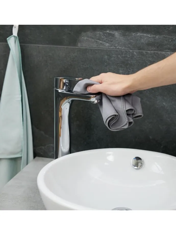 Für eine optimale Entfaltung der Reinigungswirkung sollten die Tücher vor der ersten Verwendung einmal ohne andere Textilen gewaschen werden.