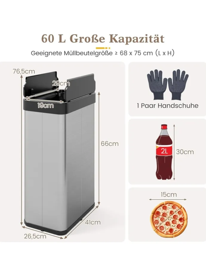 Geeignete Müllbeutelgröße: ≥ 68 x 75 cm (L x H)