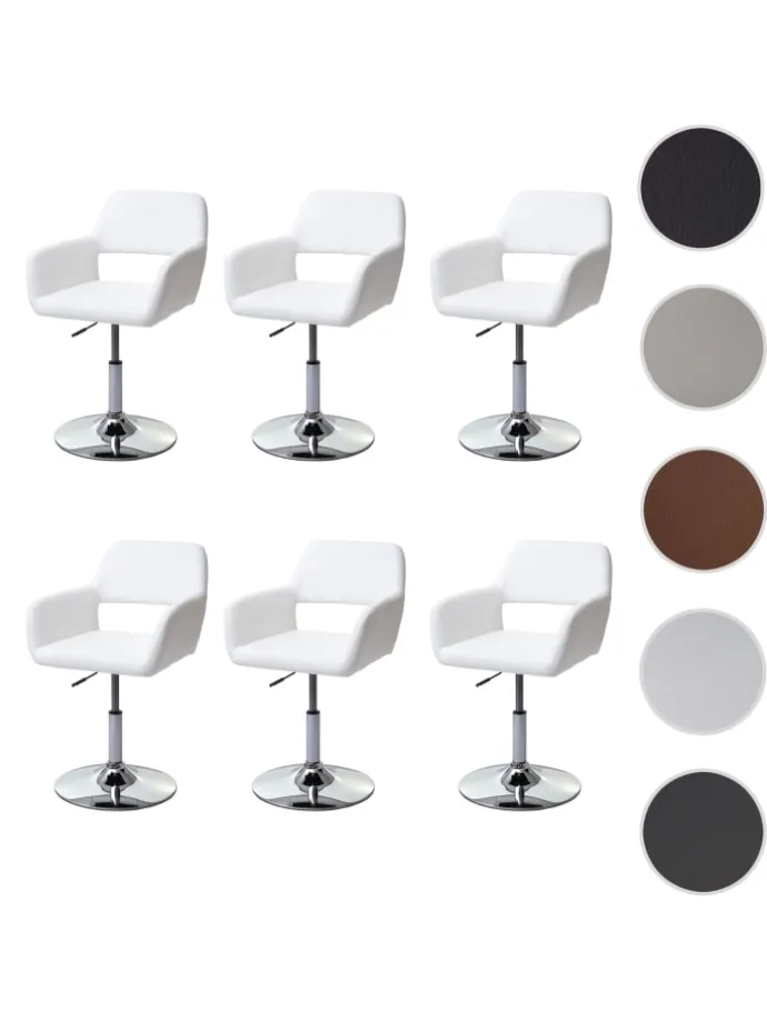 Diese Stühle erfreuen durch tolle Optik und gute Verarbeitung. Stabil, schick und im wirkungsvollen Retro-Stil versprüht diese Stuhlserie schlichte Eleganz. Edles Design und hoher Sitzkomfort machen diese Stühle zum Erlebnis. Der verchromte zylinderförmige Fuß bietet einen sicheren Stand und rundet das hochwertige Design perfekt ab. Um 360° drehbar und höhenverstellbar, erfüllen diese Esszimmerstühle sämtliche Anforderungen und wird Ihnen lange Freude bereiten. Die vielseitigen Kunstlederstühle passen hervorragend in den Wohnbereich, die Küche und das Esszimmer und repräsentiert dabei ein individuelles Wohngefühl.