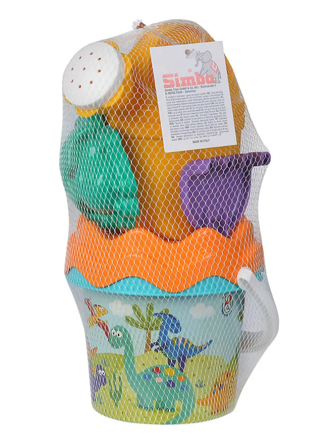 – Inhalt: Eimer, Sieb, Sandform, Schaufel, Rechen und Gießkanne