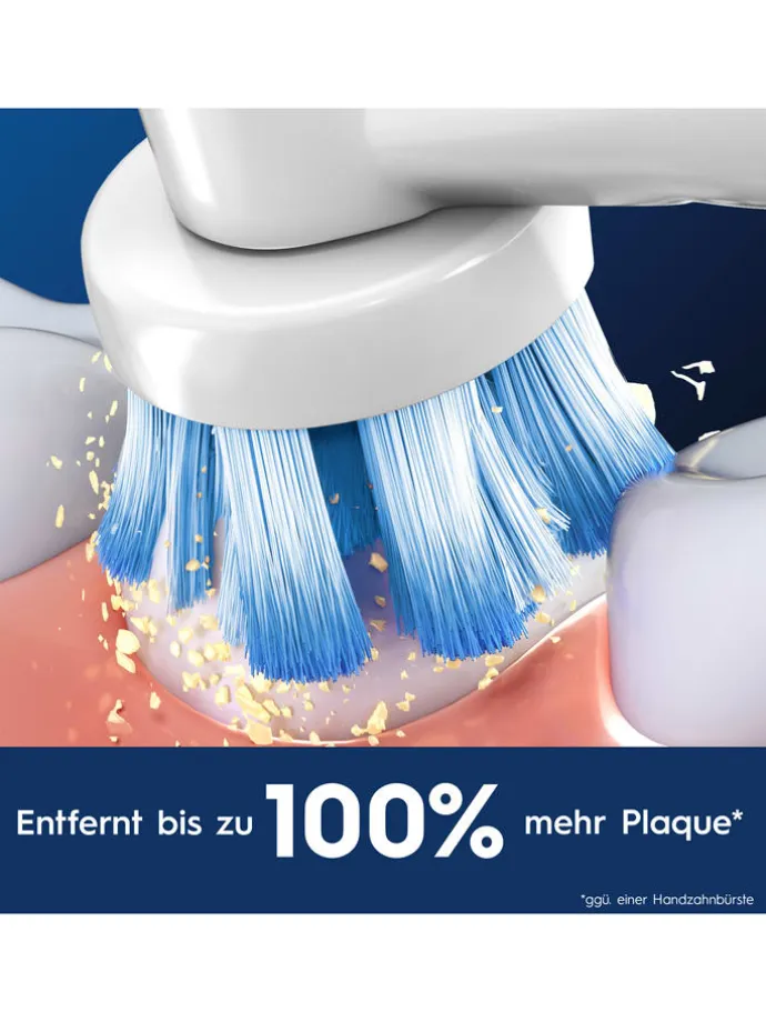 – runder Bürstenkopf, umschließt jeden Zahn einzeln
