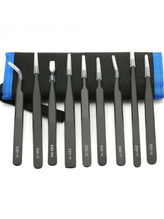 – Ein Pinzettenset bestehend aus 9 Teilen ist ein ideales Werkzeug für präzise Reparaturen und Servicearbeiten