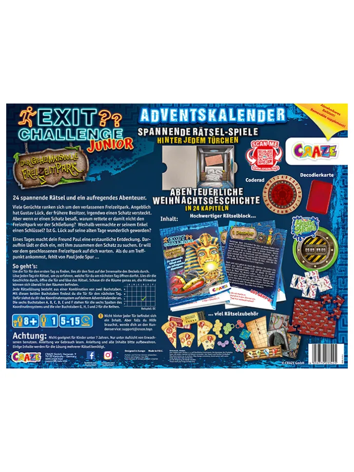 – Inhalt: Exit Challenge-Adventskalender mit 24 verschiedenen und hochwertigen Mystery-Spielen und speziellen Extras