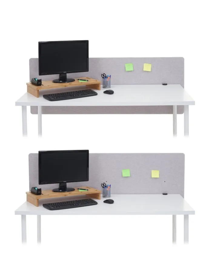 Dieses vielseitige Tischelement eignet sich für Arbeitsräume wie zum Beispiel einem Büro oder einem Klassenraum, in welchem man den Geräuschpegel reduzieren und ein besseres Arbeitsklima schaffen möchte, um die Konzentrationsfähigkeit zu steigern. Hier kann die Trennwand auch zusätzlich als Nies- und Hustenschutz zum Einsatz kommen. Zudem sorgt die moderne Schallwand für mehr Privatsphäre zwischen zwei Arbeitsplätzen an Ihrem Schreibtisch. Die Anbringung der Trennwand kann an zwei unterschiedlichen Positionen befestigt werden. Durch ihr unaufdringliches Design lässt sich die Klemmtrennwand in Ihre bestehende Einrichtungen bestens integrieren.