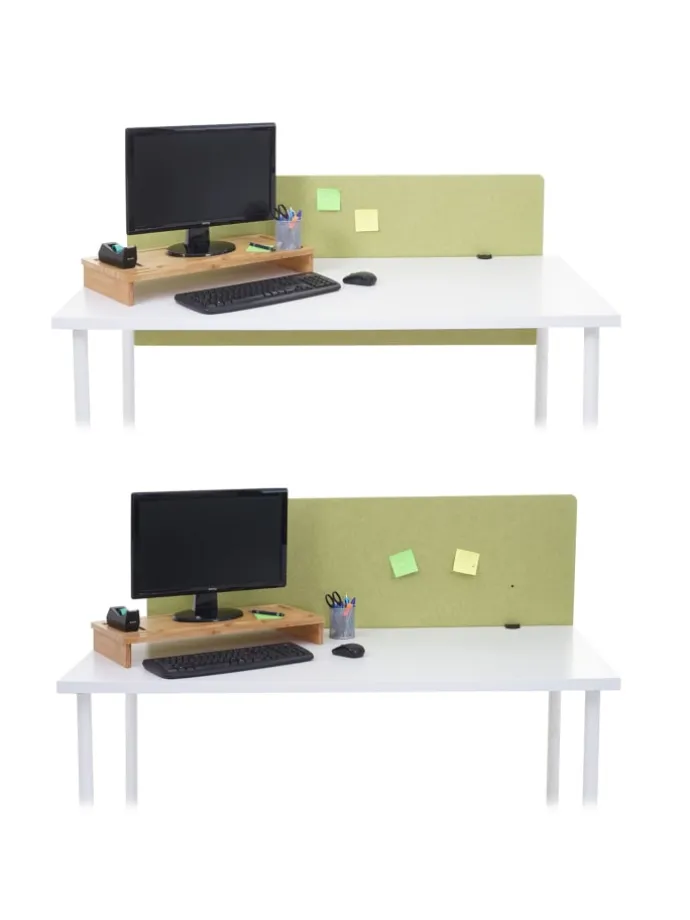 Dieses vielseitige Tischelement eignet sich für Arbeitsräume wie zum Beispiel einem Büro oder einem Klassenraum, in welchem man den Geräuschpegel reduzieren und ein besseres Arbeitsklima schaffen möchte, um die Konzentrationsfähigkeit zu steigern. Hier kann die Trennwand auch zusätzlich als Nies- und Hustenschutz zum Einsatz kommen. Zudem sorgt die moderne Schallwand für mehr Privatsphäre zwischen zwei Arbeitsplätzen an Ihrem Schreibtisch. Die Anbringung der Trennwand kann an zwei unterschiedlichen Positionen befestigt werden. Durch ihr unaufdringliches Design lässt sich die Klemmtrennwand in Ihre bestehende Einrichtungen bestens integrieren.