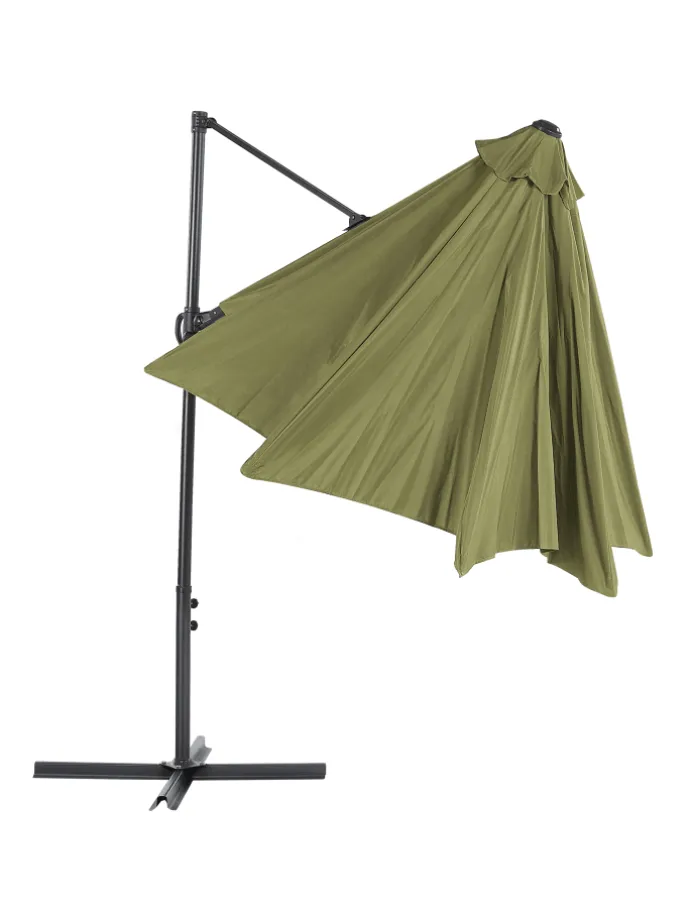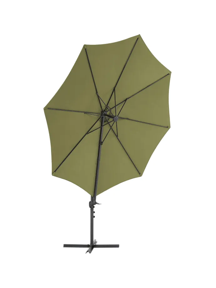 Großer, achteckiger Sonnenschirm mit modernem Design. Im Sommer wird die Terrasse zum Wohnzimmer im Freien, und da gehört ein stylischer Sonnenschirm auf jeden Fall dazu. Durch den seitlichen Fuß und den großen achteckigen Schirm findet sich hier immer ein schattiger Platz für Ihre Gartenmöbel. Das Modell ist mit einem robusten Mast aus Aluminium und einer strapazierfähigen Bespannung ausgestattet. Durchdachte Technik ermöglicht leichtes Öffnen und Schließen des Schirms mit einem Kurbelmechanismus. Ein robuster Kreuzfuß und eine praktische Windhaube sorgen für stabilen Stand. Zudem lässt sich der Arm platzsparend einziehen.
