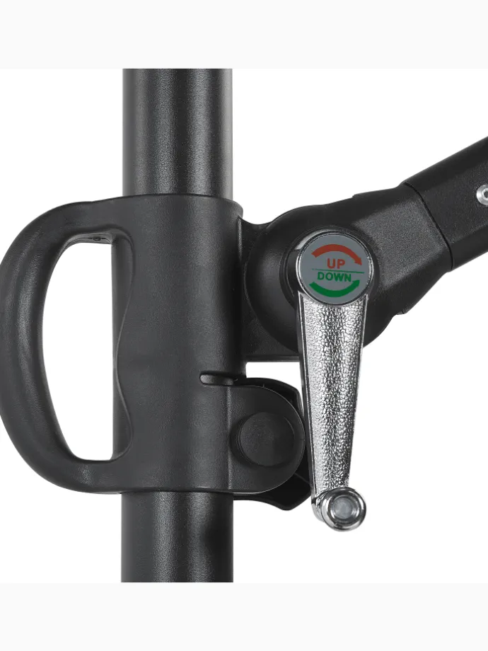 Zusatzinformationen: Die empfohlene Beschwerung des Schirms beträgt 50 Kg. Die Sonnenschirme sind für eine Windstärke bis zu 25 km/h konzipiert. Drehen Sie die Kurbel nach dem vollständigen Schließen oder Öffnen des Schirms nicht weiter in die gleiche Richtung, da dies den Mechanismus beschädigen kann.