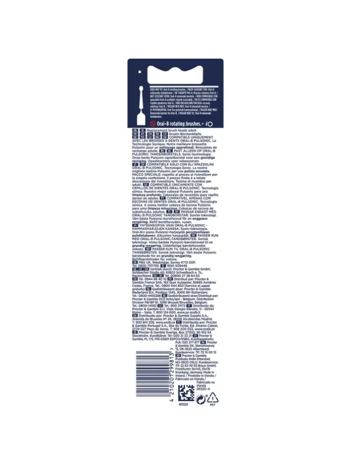 Lieferumfang: 12 Oral-B Pulsonic Clean Aufsteckbürsten (aus hygienischen Gründen einzeln verpackt)