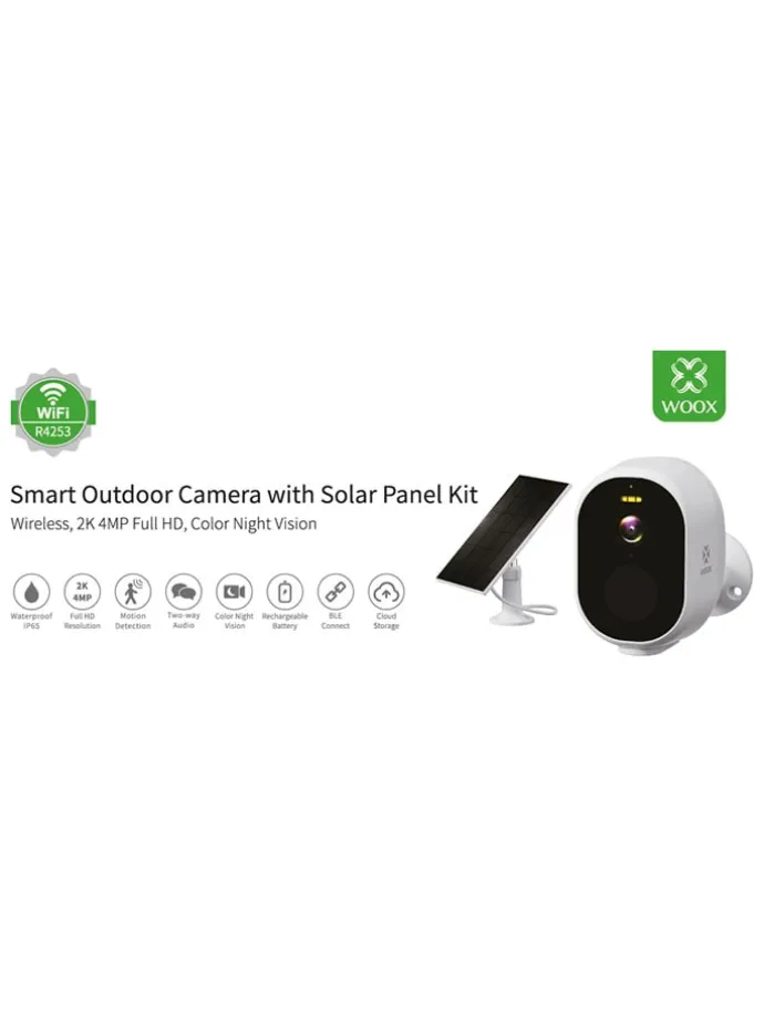 – Lieferumfang: 1x Kamera WOOX R4253, 1x Solarpanel mit Halterung, 1x USB-C-Kabel zum Aufladen, 1x Beutel mit Schrauben, 2x Sicherheitsaufkleber, 1x Anleitung