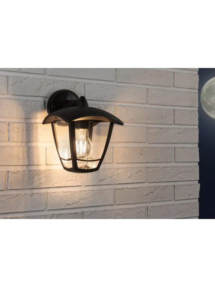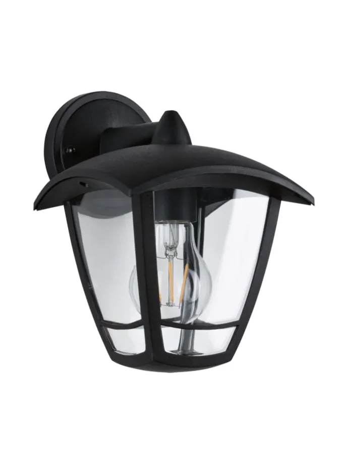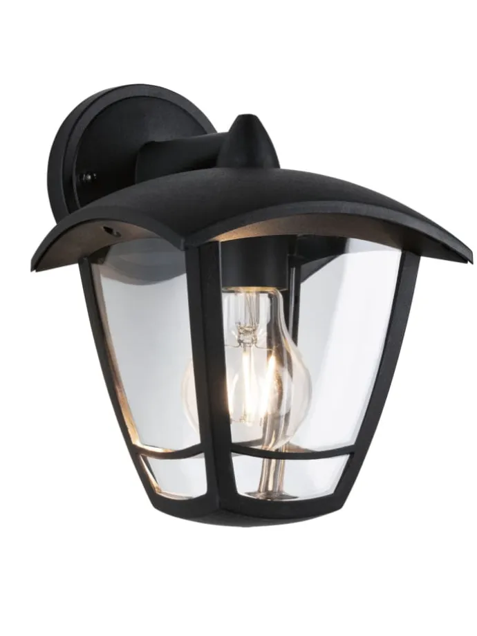 Außenwandleuchte Classic Curved IP44 164x225mm max. 12W 230V Klar#Schwarz Kunststoff
