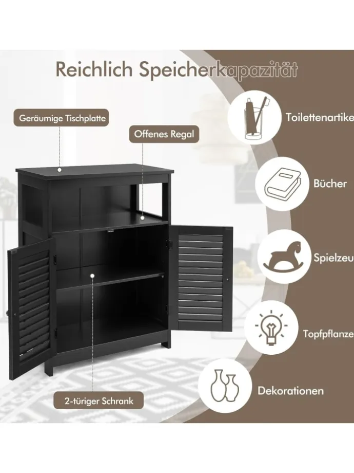Bestehend aus hochwertigem P2 MDF ist er stabil und kann langfristig genutzt werden. Durch seine Struktur ist er äußerst standfest. Außerdem bietet er mit einem Regal und einem geräumigen Innenraum viel Platz für alle möglichen Dinge. Das Regal kann verstellt werden und ist daher geeignet für unterschiedlich große Gegenstände. Der Schrank kann durch sein einfaches und modernes Design in jede Einrichtung integriert werden und ist daher ideal für Badezimmer, Wohnzimmer, Schlafzimmer und Flure!