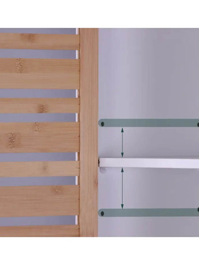 Der kompakte Badhochschrank eignet sich ideal für kleine Badezimmer. Platzsparend und doch geräumig bietet der Handtuchschrank in 6 Fächern Platz für Duschbad, Lotionen, Parfums und weitere Badaccessoires. Die Höhen der unteren Schrankfächer sind durch den Einlegeboden flexibel wählbar. Dank des cleveren Magnetverschlusses bleiben die Schranktüren stets sicher verschlossen. Optisch überzeugt der Badezimmerhochschrank mit seinem weißen Design und den Türen aus natürlichem Bambus.